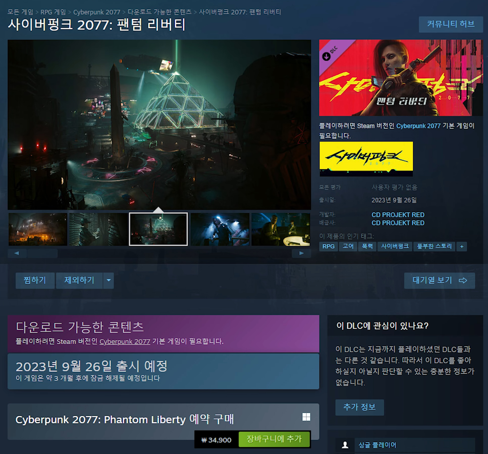 사이버펑크2077 팬텀 리버티 초반플레이 영상